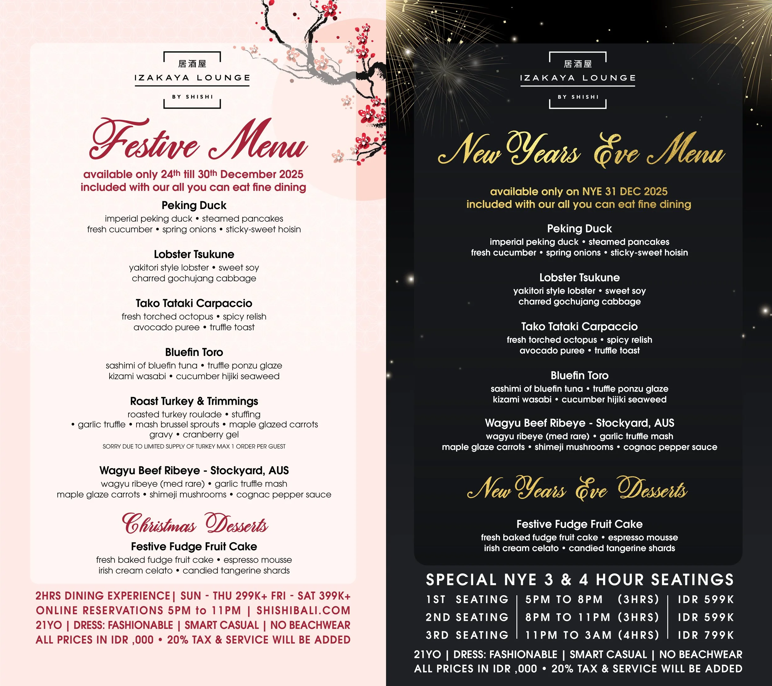 IZAKAYA RESERVATIONS CLUB RESERVATIONS NYE 2025-26 PARTY BUY GA NYE TICKET BUY VIP TABLE & BOTTLE SERVICE SPECIAL FESTIVE MENU AVAILABLE 24 to 30 DEC SPECIAL NYE 3 HOUR DINING AVAILABLE 31 DEC • 3 SEATINGS BOOK NOW EVENTS THIS WEEK WED 17 DEC THU 18 DEC FRI 19 DEC SAT 20 DEC SUN 21 DEC MON 15 DEC TUE 16 DEC LADIES NIGHT MENU BOOK RESTAURANT MENU BOOK NIGHTCLUBS MENU BOOK UPCOMING EVENTS Events Dec 17 Izakaya WEDNESDAY 17 DEC 2025 Izakaya Izakaya Dec 17 Main Room WEDNESDAY 17 DEC 2025 Main Room Main Room Dec 17 Hiphop & RNB Room WEDNESDAY 17 DEC 2025 Hiphop & RNB Room Hiphop & RNB Room Dec 18 Izakaya THURSDAY 18 DEC 2025 Izakaya Izakaya Dec 18 Main Room THURSDAY 18 DEC 2025 Main Room Main Room Dec 18 Hiphop & RNB Room THURSDAY 18 DEC 2025 Hiphop & RNB Room Hiphop & RNB Room ALL EVENTS
