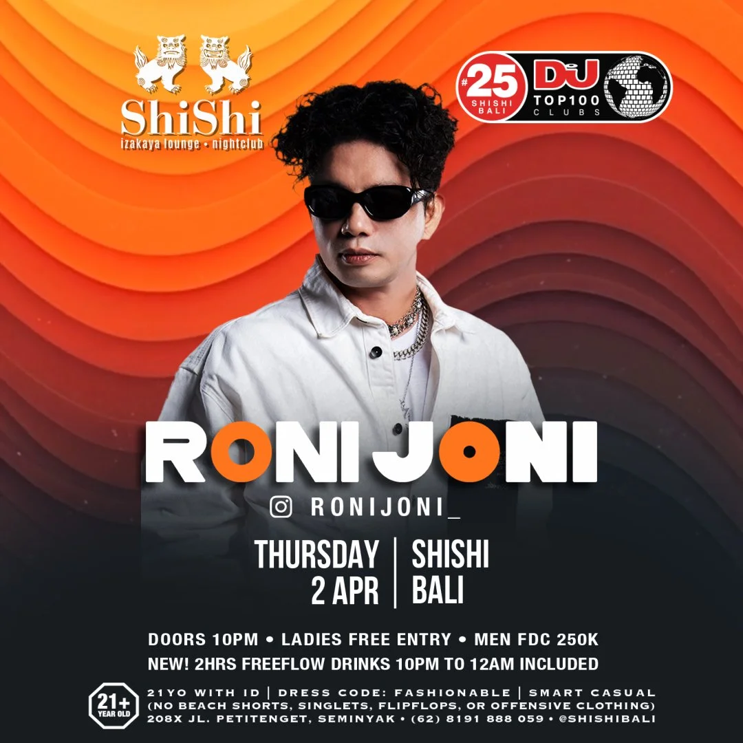 RONI JONI Thursday, April 2, 2026 10:00 PM 11:00 PM 208x Jalan Petitenget Bali, 80361 (map) Google Calendar ICS BOOK NOW